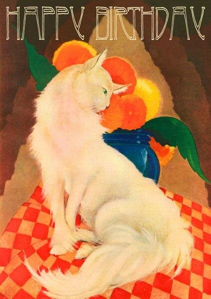 Karnet B6 z kopertą Urodziny Biały kot, w środku bez tekstu, wyprodukowany w Wielkiej Brytanii. przeczytaj całość
