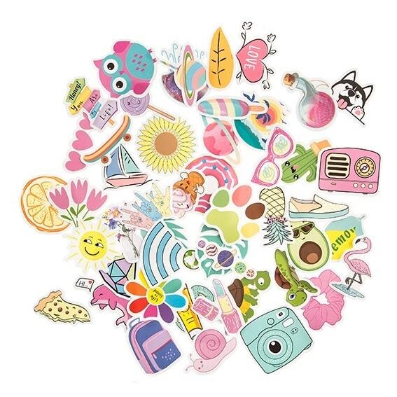 Winylowe naklejki Summer Vibe 50 szt.Naklejki winylowe przeniosą Cię w letni klimat. Poczuj wakacyjny vibe i baw się fantastycznymi motywami. Naklejki są odporne na działanie wielu czynników zewnętrznych oraz przede wszystkim wodoodporne. Dzięki temu można oklejać nimi przedmioty do użytku...