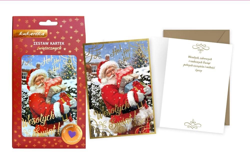 Zestaw kartek świątecznych ZKA-001 Zestaw zawiera 10 jednakowych kartek świątecznych z kopertami. Karnety są kolorowe i uszlachetnione metalizowaną folią hot-stamp. Ten zestaw to idealne rozwiązanie, aby mieć zawsze pod ręką zapas pięknych kartek świątecznych, gotowych do wręczenia bliskim i...