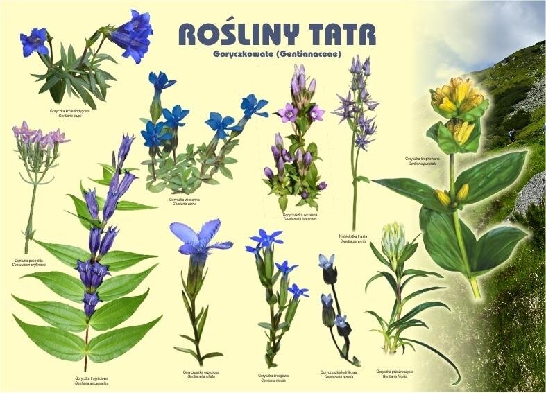Tablica 100x72cm Rośliny Tatr. Goryczkowate
