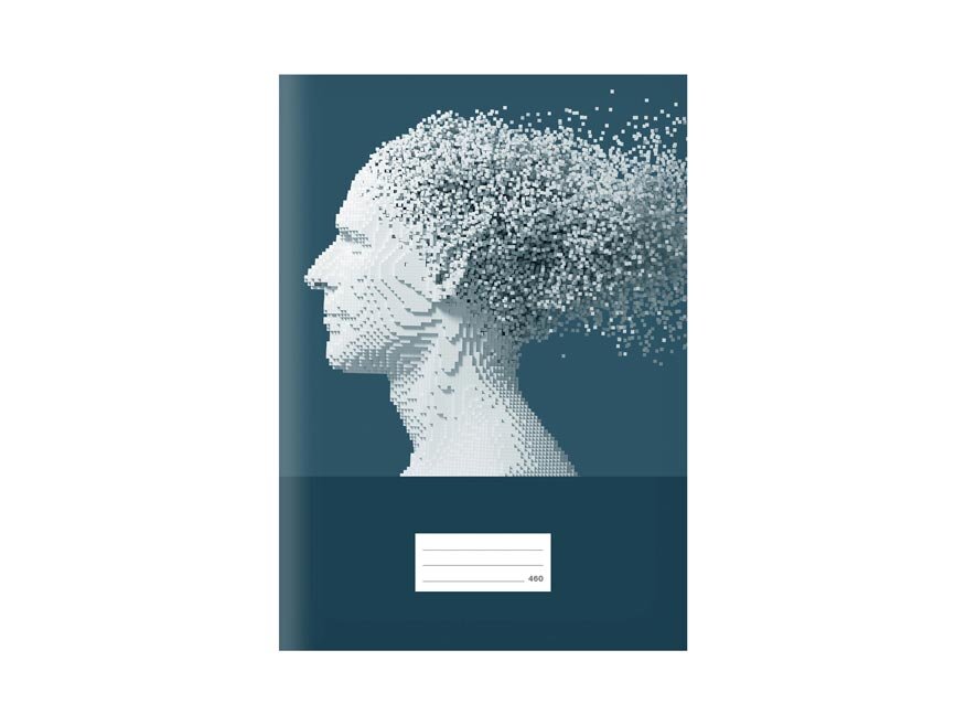 Fascynujący motyw ludzkiej głowy złożonej z drobnych cząstek na okładce zeszytu szkolnego LUX przyciąga uwagę swoją oryginalnością i futurystycznym wyglądem.