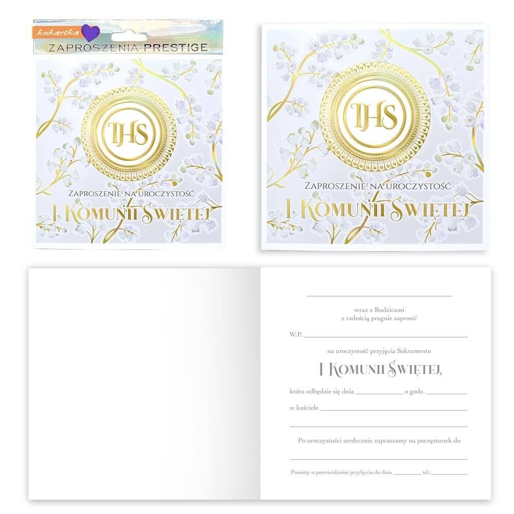 Zaproszenie Premium na I Komunię Świętą ZP-054 Zaproszenia z serii Premium ZP wyróżniają się elegancją i wyjątkowym opakowaniem. Zdobienia w zależności od wzoru zawierają dekoracyjne elementy doklejane - perełki, kokardki, akcenty biżuteryjne; tłoczenia oraz uszlachetnienia, takie jak folia...