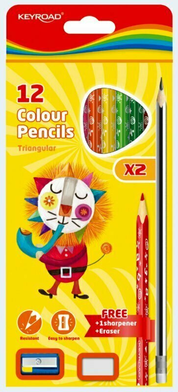 Kredki ołówkowe 12 kolorów KEYROAD + 2 ołowki, gumka i temperówka