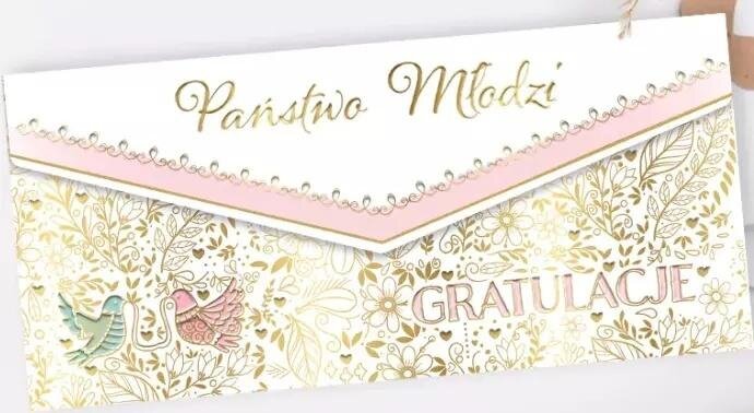 Ozdobna koperta na pieniądze, złocona i tłoczona. W zestawie wkałdka z życzeniami oraz koperta ochronna. przeczytaj całość