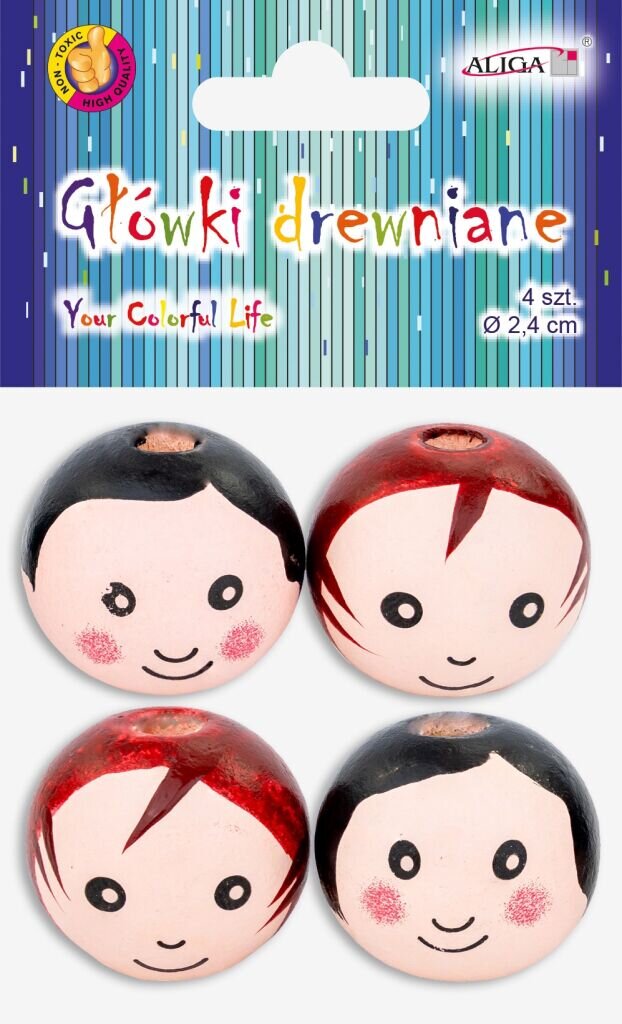 Dřevěné hlavičky o průměru 2,5 cm a s otvorem 5 mm k dalšímu tvoření. V balení 4 ks przeczytaj całość