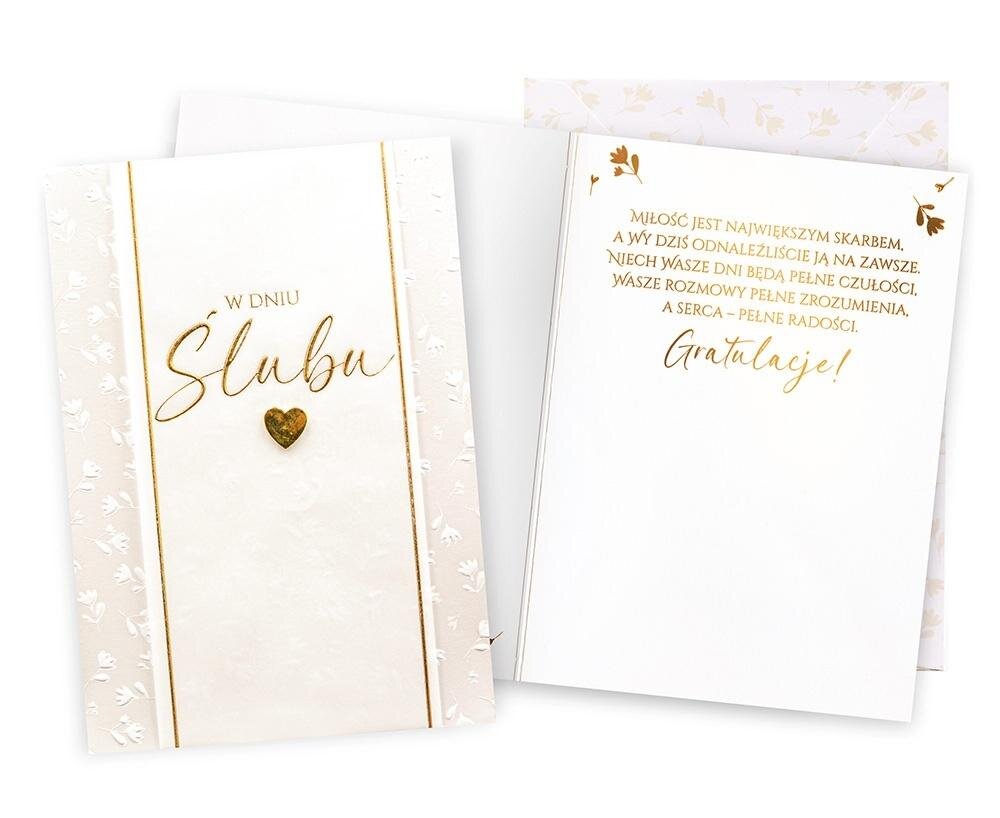 Kartka Dream Cards na Ślub DK-1317 Kartka B6 z ozdobnej serii Dream Cards - nieduża, ale robi wrażenie dzięki atrakcyjnej kolorystyce i ciekawym zdobieniom. To idealny wybór łączący przyjazną cenę z jakością. Cechy szczególne: wielkość: B6, 16.6 x 11.7 cm po złożeniu, koperta: w zestawie,...