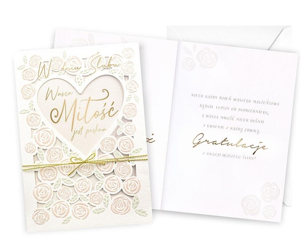 Kartka Dream Cards na Ślub DK-1322 Kartka B6 z ozdobnej serii Dream Cards - nieduża, ale robi wrażenie dzięki atrakcyjnej kolorystyce i ciekawym zdobieniom. To idealny wybór łączący przyjazną cenę z jakością. Cechy szczególne: wielkość: B6, 16.6 x 11.7 cm po złożeniu, koperta: w zestawie,...