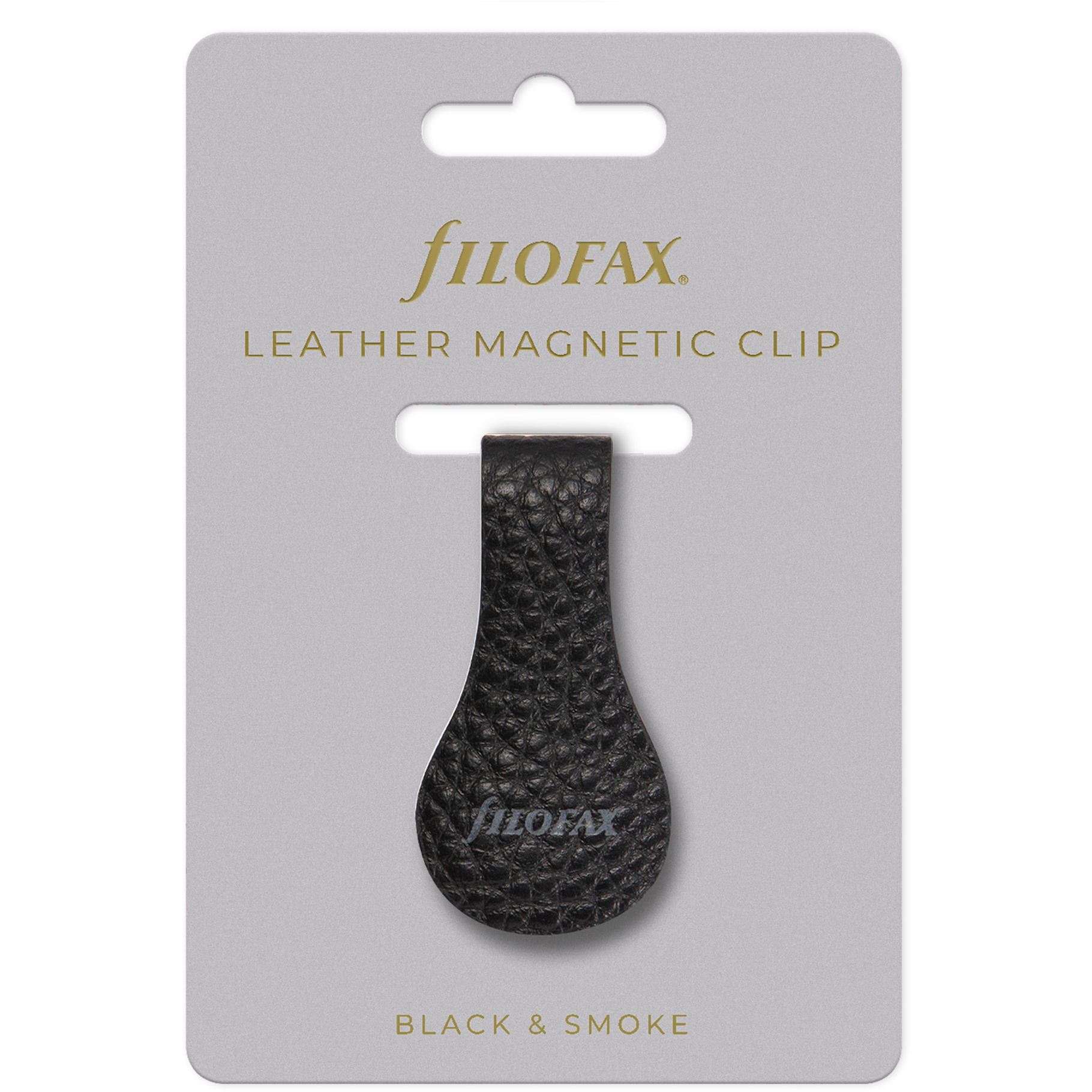 Filofax, Magnetický klip, kožený, černá/kouřová