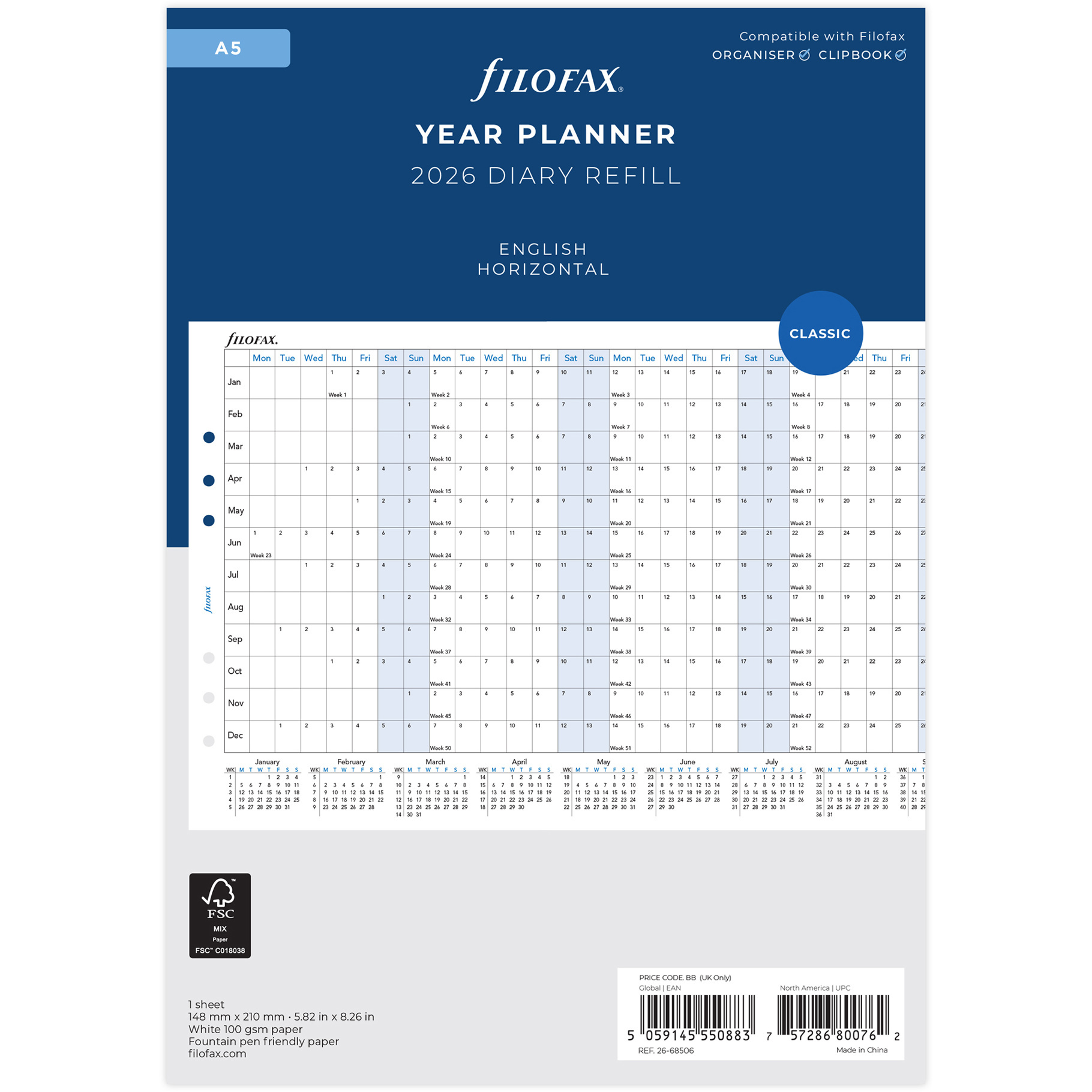 Filofax, Plánovací Kalendář 2026 A5, horizontální, AJ