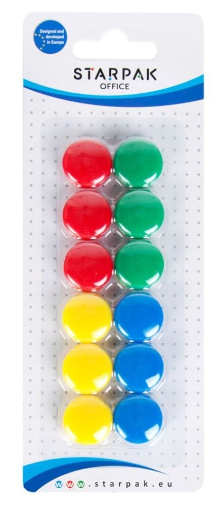 Zestaw magnesów w 4 kolorach: niebieskim, żółtym, czerwonym i zielonym. Pakowane w blister po 12 szt. Przydatne w biurze, domu, pracy. przeczytaj całość