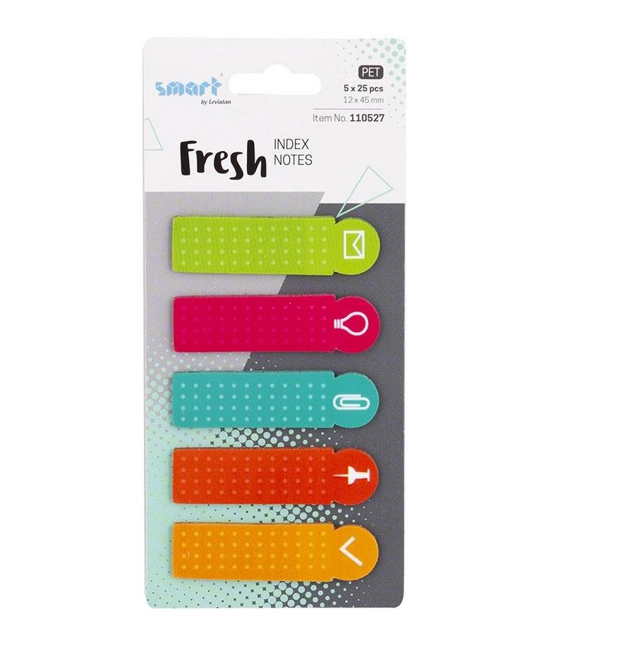 Absolutnie świeże i wyjątkowe. Doskonałe wyróżnienie wskazanego tekstu. Zakładki są wykonane z folii PET, można je wielokrotnie przyklejać i odklejać, można po nich pisać.Każdy komplet to 5 wzorów po 25 zakładek o wymiarach 45x12 mm. przeczytaj całość