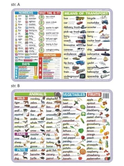 numbers, what time is it?, days, monthsmeans of transportanimals: wild, farm, petsvegetables & fruits przeczytaj całość