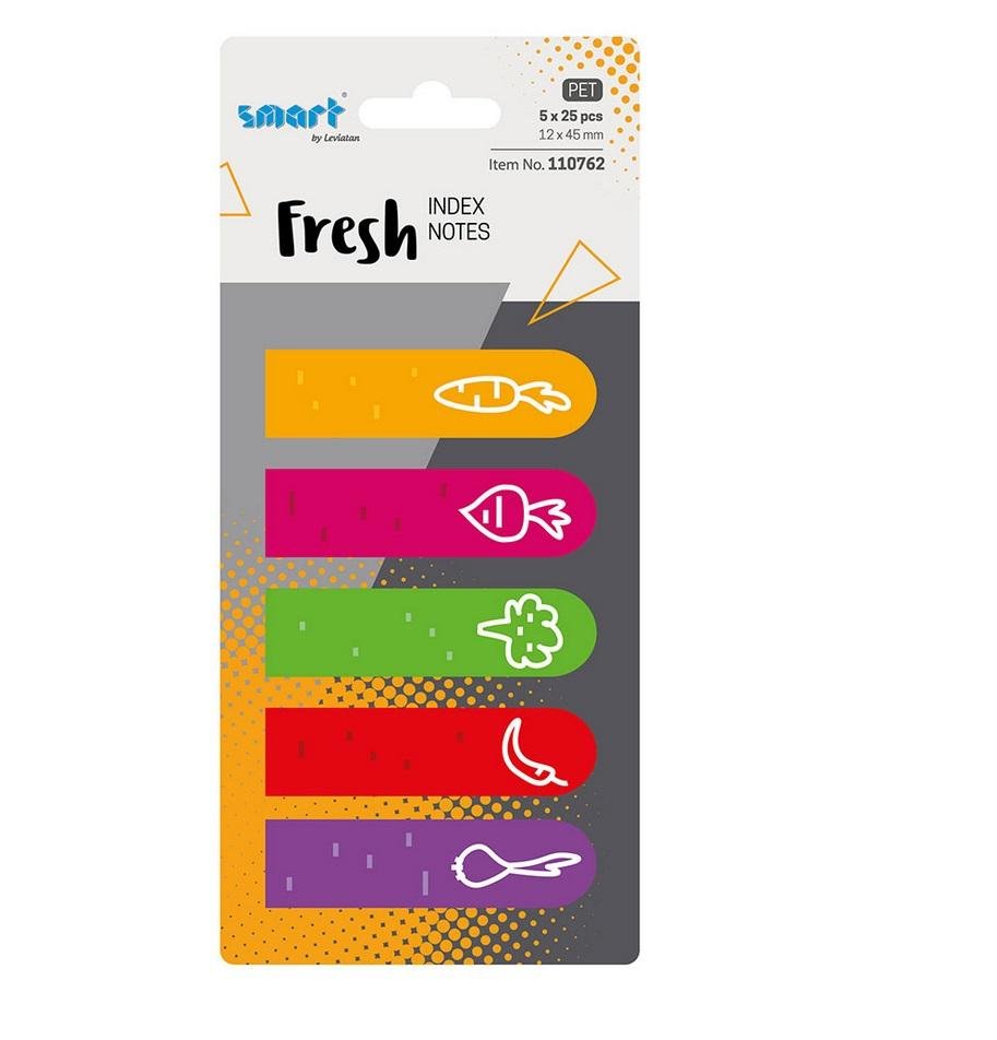 Absolutnie świeże i wyjątkowe. Doskonałe wyróżnienie wskazanego tekstu. Zakładki są wykonane z folii PET, można je wielokrotnie przyklejać i odklejać, można po nich pisać. Każdy komplet to 5 wzorów po 25 zakładek o wymiarach 45x12 mm. przeczytaj całość