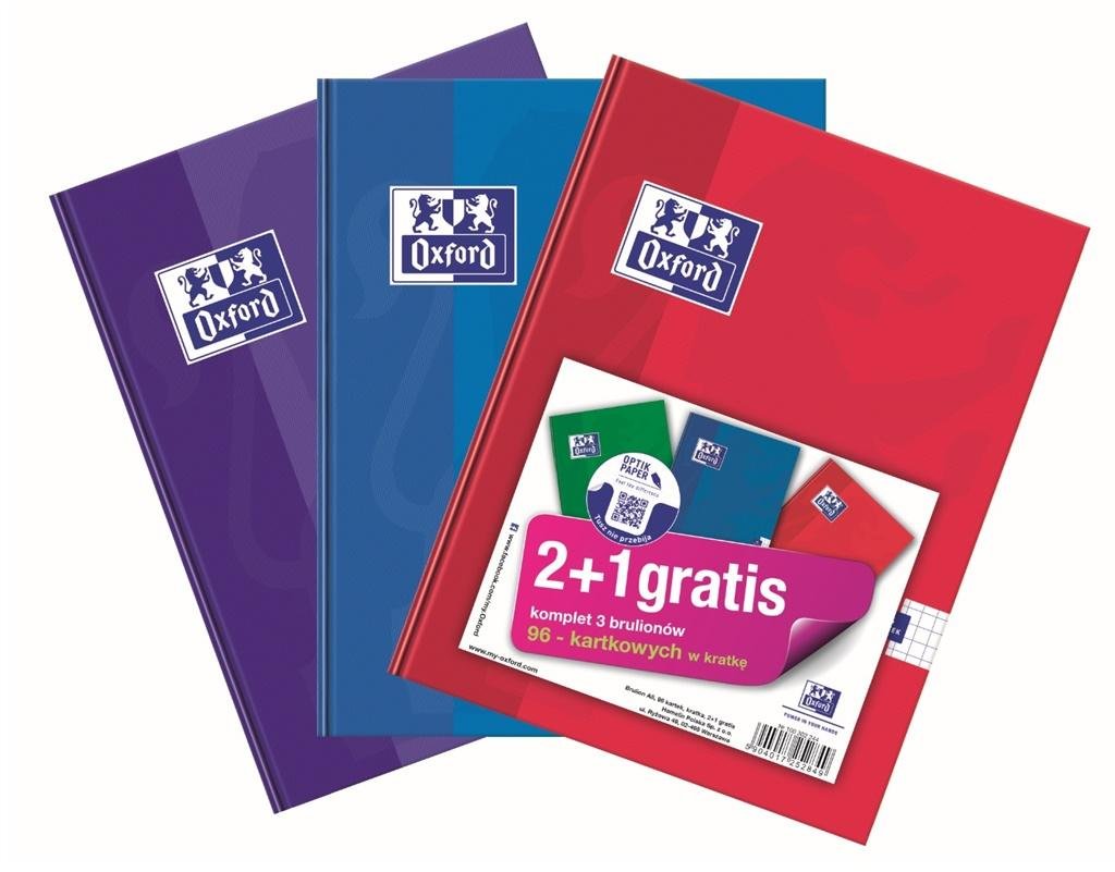 Brulion Oxford w twardej oprawie 2+1 gratis, 60 kartkowy w kratkę z marginesem o gramaturze 90g. przeczytaj całość