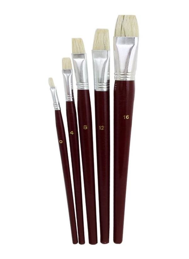 Do farb olejnych, artystyczne, płaskie, drewniana rękojeść, metalowe okucie, szczecina. Opakowanie blister 5szt. Rozmiary: 0,4,8,12,16. przeczytaj całość