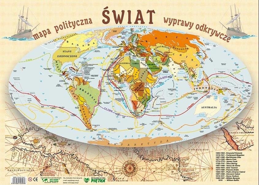 Podkładka nabiurkowa świata wyprawy odkrywcze to propozycja dla tych wszystkich, którzy lubią uczyć się czy poznawać świat. Podkładka ta to mapa z podziałem politycznym świata. Zawiera szlaki największych wypraw geograficznych w latach 1492 1616 i odkryć dokonanych przez europejskich żeglarzy. przeczytaj całość