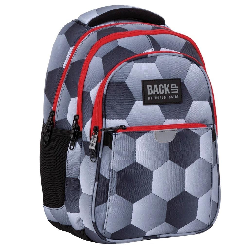 Wzór stworzony dla wszystkich miłośników footballu! Oryginalny, mocno powiększony motyw piłki przyciągnie uwagę każdego sportowca! Szara kolorystyka i piłkarski print tworzą spójną całość. Plecak zapewni doskonały komfort noszenia, a dzięki zastosownym kolorom unikniesz widocznych zabrudzeń.-...