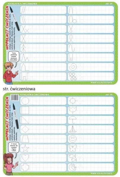 o edukacyjna podkładka ćwiczeniowa Visual Systemo do samodzielnych ćwiczeń o wypełniać cienkim mazakiem lub markerem do tablic suchościeralnycho treść można zmazać papierową chusteczką o dwustronnie foliowanao drukowana na kredzie 350 g przeczytaj całość