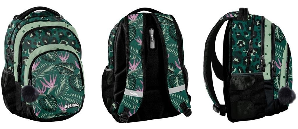 Plecak młodzieżowy, szkolny. Trzy pojemne komory, kieszeń przednia z organizerem, 2 boczne kieszenie z siatki+materiał. Wzmocnione profilowane plecy evafoam, miękkie wygodne szelki. Wzmocniony i usztywniony spód. Wygodny uchwyt do przenoszenia i uszko do powieszenia. W komorze głównej przegroda (na laptop), w drugiej komorze organizer z kieszenią na zamek, uchwyt na klucze. Elementy odblaskowe dla większego bezpieczeństwa.
