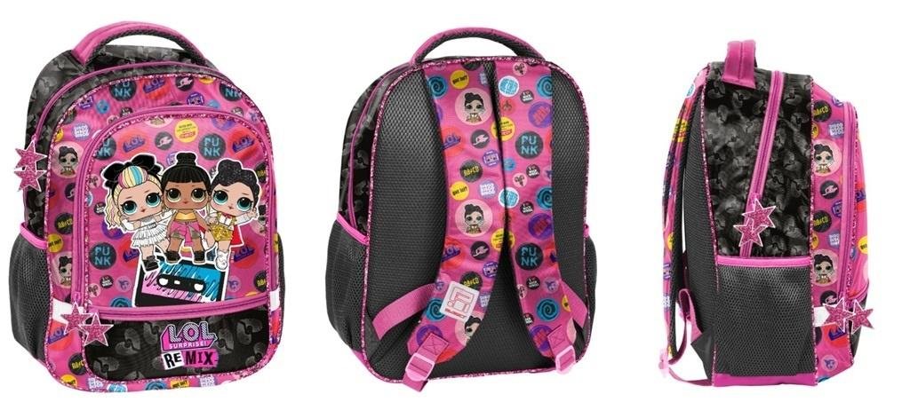 Plecak dwukomorowy szkolny, jedna płaska mała kieszeń na froncie, dwie boczne kieszenie z siatki (mieszczą małą butelkę, bidon lub termos). Elementy odblaskowe, usztywnione plecy pokryte siatką. Wygodny uchwyt do przenoszenia. Wygodne pullery ułatwiające odpinanie zamków. przeczytaj całość