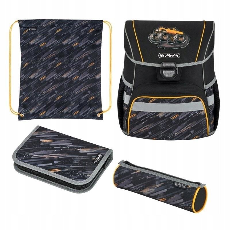 Tornister Herlitz Loop plus Monster Truck z wyposażeniemergonomicznie ukształtowane i wykonane z przepuszczającego powietrze plecy tornistramiękko wyściełane szelkiłatwe zapinanie za pomocą klamry ze światełkiem odblaskowymdwie otwarte boczne kieszenie ze ściągaczemprzednia kieszeń zapinana na...