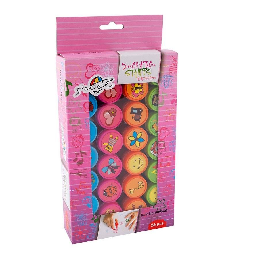 Zestaw 26 pieczątek dekoracyjnych z różnymi motywami, np.:motylki, serca, kwiatki. przeczytaj całość