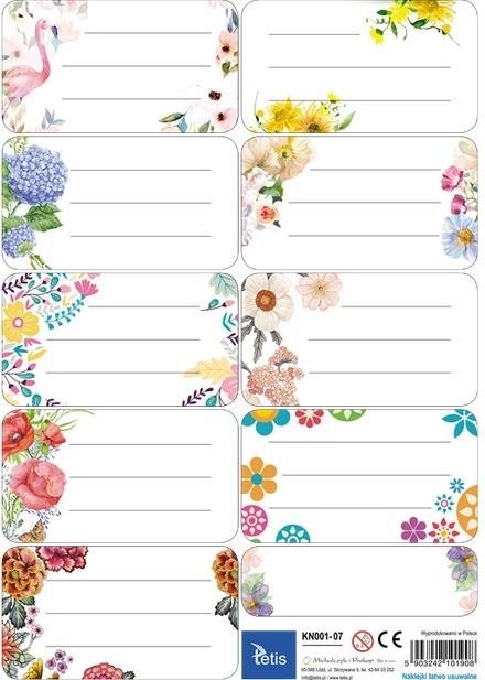 Naklejki na zeszyty i książki z zaokrąglonymi rogami, łatwo usuwalne. Na arkuszu znajduje się 9 etykiet. Jednostka sprzedaży: folia 25 arkuszy.Wymiary pojedynczej naklejki: 76 x 42 mmWymiary arkusza: 165 x 232 mm przeczytaj całość