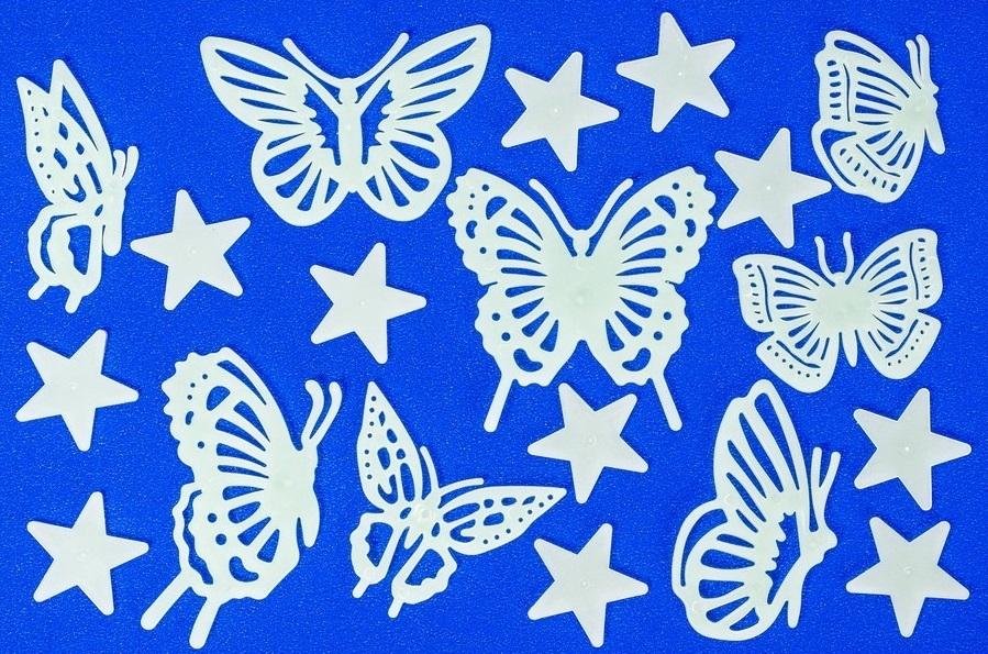 Naklejki fluorescencyjne - Motyle gwiazdki (9szt)