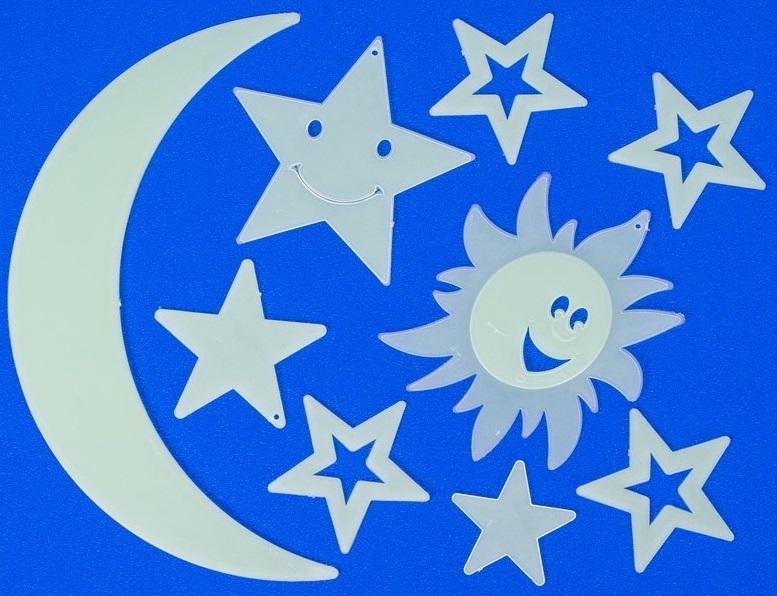 Naklejki fluorescencyjne - Księżyc gwiazdy (9szt)