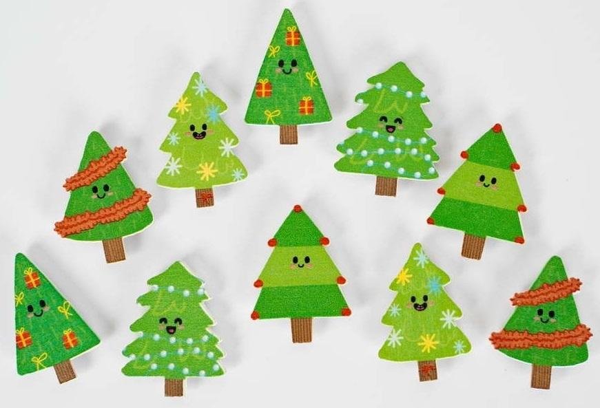 Naklejki drewniane 3cm - Choinki (10szt)