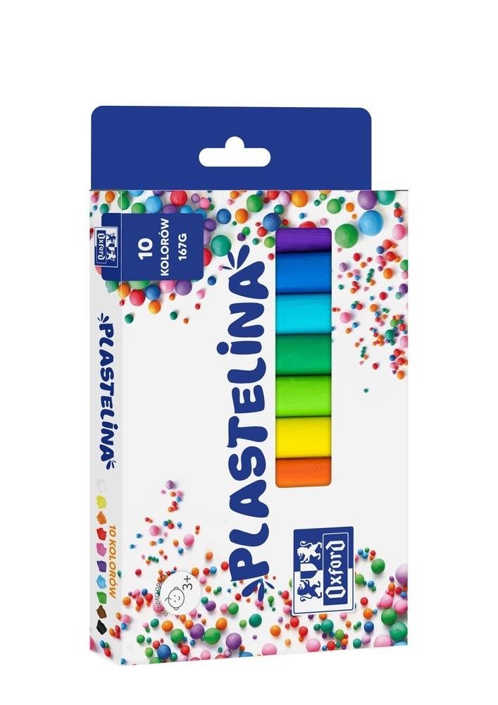 Plastelina Oxford 10 kolorów 167g:intensywne, nasycone kolory,jest miękka i elastyczna - z łatwością poddaje się modelowaniu,doskonale nadaje się do wykrawania i wyciskania wzorów za pomocą foremek,idealnie rozprowadza się na papierze przy tworzeniu mozaiki z plasteliny,może być wielokrotnie...