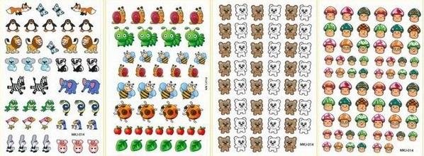 Naklejki papierowe Mini MKJ-014ok. 100 naklejek papierowych, 4 arkusze 8 x 12,5 cm przeczytaj całość