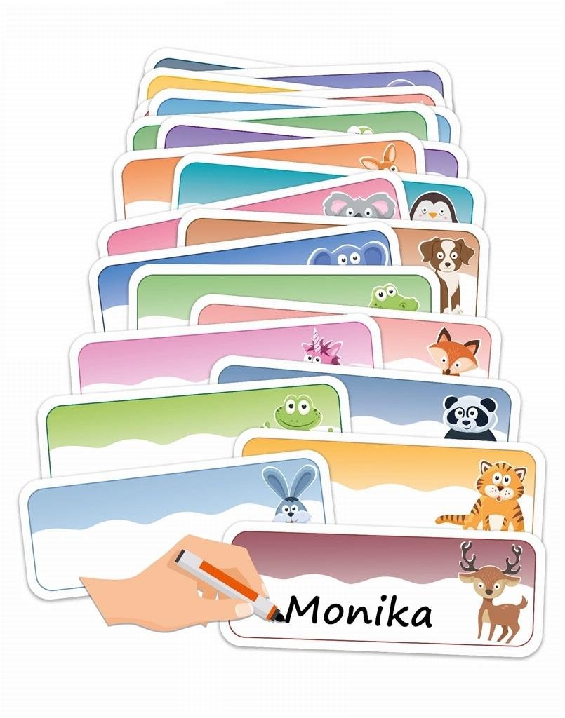 Zestaw znaczków do szatni, który ułatwi dzieciom odszukanie ich szafek, półek lub wieszaków.Świetny sposób do lepszej i bardziej urozmaiconej organizacji miejsca np. w przedszkolu!Zestaw składa się z 30 kolorowych kart w rozmiarze ~10x4cm + 32 klejowych kropek.Na każdej karcie znajduje się inne...