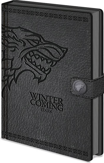 Zápisník v pevných deskách s motivem a znakem Zlovlka rodu Starků z oblíbené série Game of thrones - Hra o trůny. przeczytaj całość