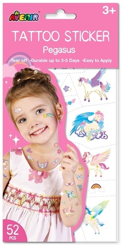 Oryginalny tymczasowy tatuaż dla dzieci zarówno dla dziewcząt, jak i chłopców w różnych atrakcyjnych motywach - Pegaz. Zabawa dla dzieci oraz ich przyjaciół i rodziny.