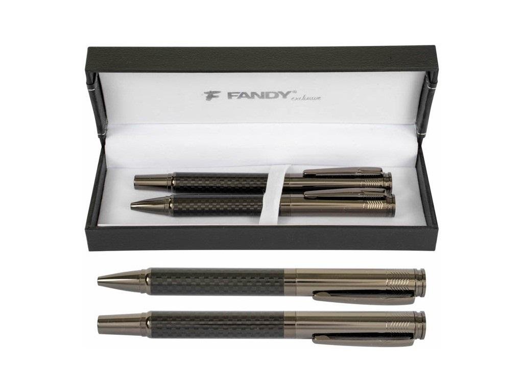Zestaw metalowego długopisu i rollera z karbonowym wykończeniem, mechanizm obrotowy, wymienny wkład F-Parker, grubość linii 0,7 mm (długopis), wkład ceramiczny, grubość linii 0,5 mm (roller), niebieski kolor tuszu, luksusowe pudełko upominkowe. przeczytaj całość