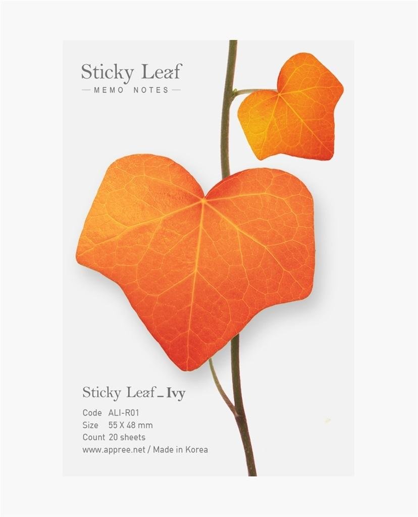 Karteczki samoprzylepne indeksujące w kształcie liści bluszczu.