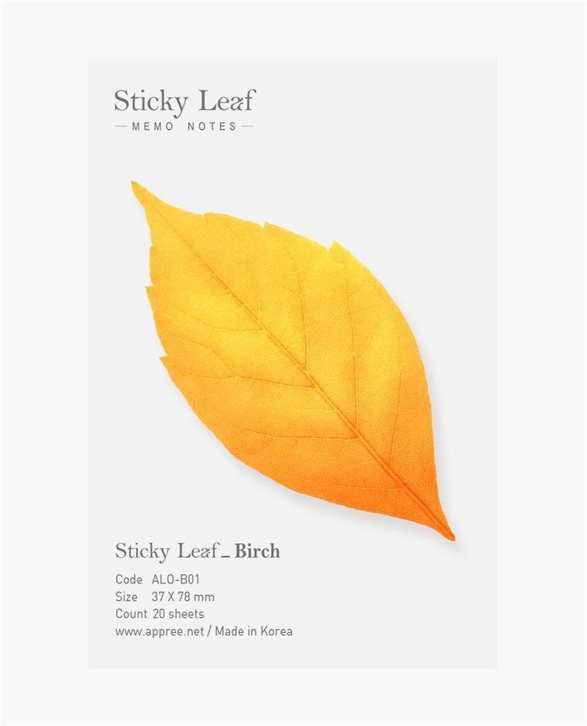 Karteczki samoprzylepne indeksujące w kształcie liści brzozy.