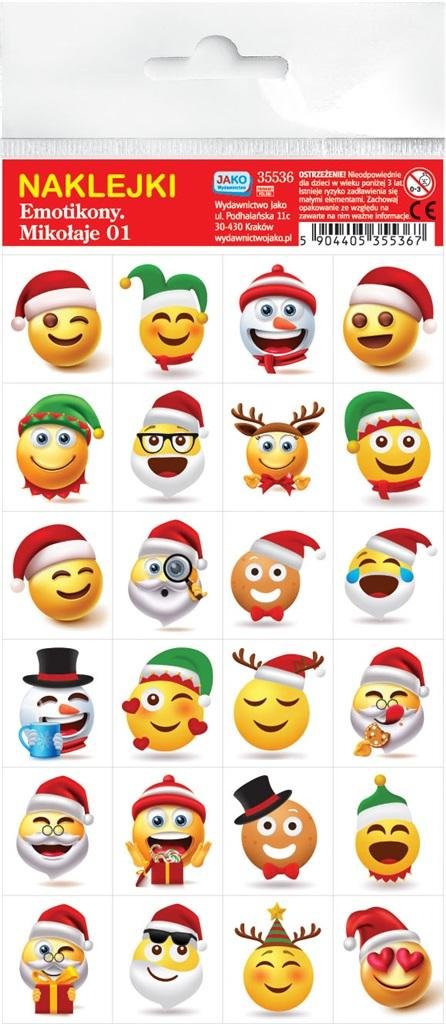 Zestaw 24 naklejek samoprzylepnych z emotikonami-Mikołajami idealnie nadaje się do wykorzystania przy wszelkich pracach kreatywnych. Naklejkami można ozdobić kartki okolicznościowe, prezenty, notesy, zeszyty i pudełka. Sprawdzą się również jako nagrody motywacyjne. przeczytaj całość
