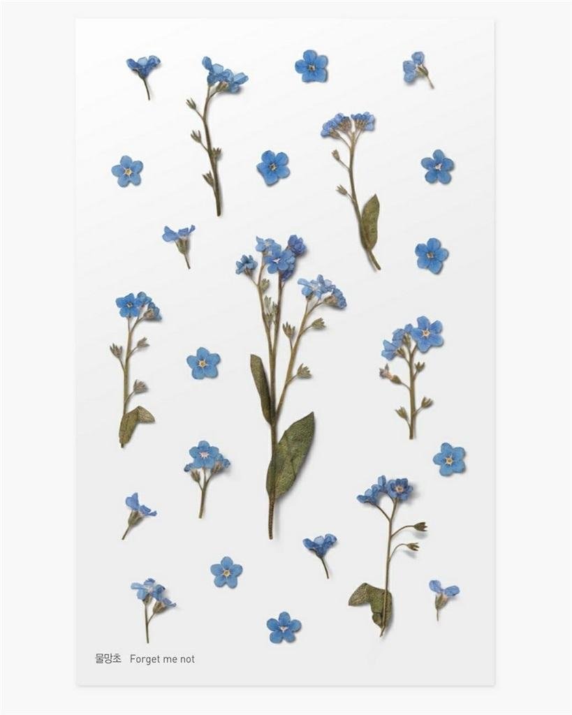 Naklejki ozdobne kwiaty Niezapominajki. Niezwykle realistyczne naklejki, które doskonale odwzorowują zasuszone rośliny. Zostały wykonane z tworzywa PET zapewniającego wysoką trwałość i precyzyjne kształty. Perfekcyjne cieniowanie i matowe wykończenie dają naturalny efekt po naklejeniu. Wykorzystasz je w domu, biurze, w planerach, książkach. W fantastyczny i kreatywny sposób można je również wykorzystać do scrapbookingu oraz bullet journalingu.