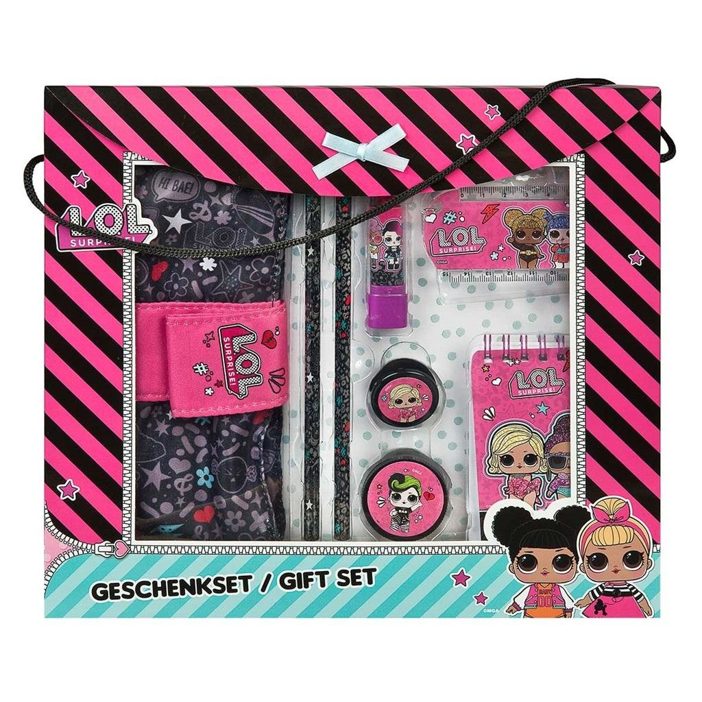 Zestaw Przyborów Szkolnych, 8el.,LOL Surprise Zestaw przyborów szkolnych, stanowiących podstawowe wyposażenie każdego malucha. Starannie wykonany, złożony z saszetki - piórnika, 2 ołówków, notesu, temperówki, gumki w kształcie szminki i linijki z lusterkiem i klipsa do papieru. Ozdobiony...