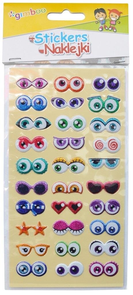 wypukłe naklejki z nadrukiem w oczy 30 naklejek na arkuszu o wymiarach 9x17,5 cm na zawieszce kolor: mix kolorów przeczytaj całość
