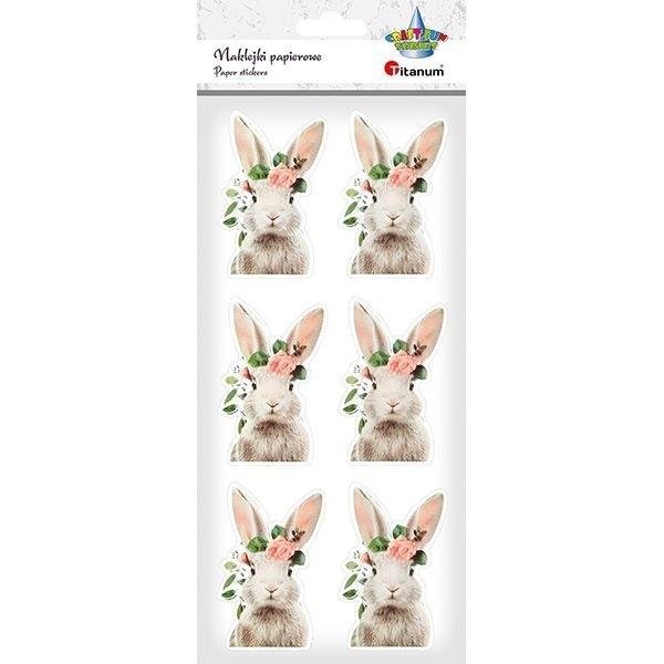 Naklejki papierowe: zając - popiersie z kwiatami na głowie, 6 szt. przeczytaj całość