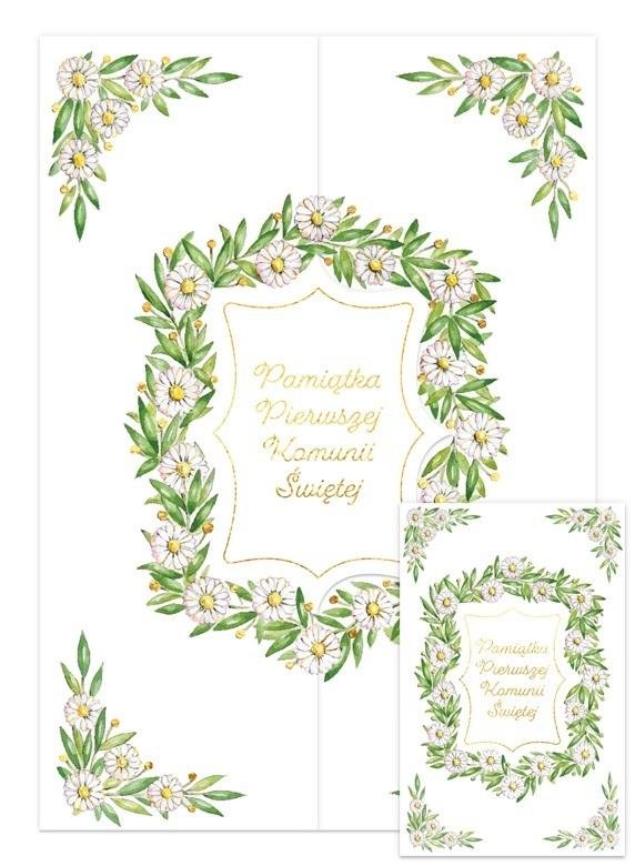 Karnet A5 z klapką Komunia. Stokrotka i merta