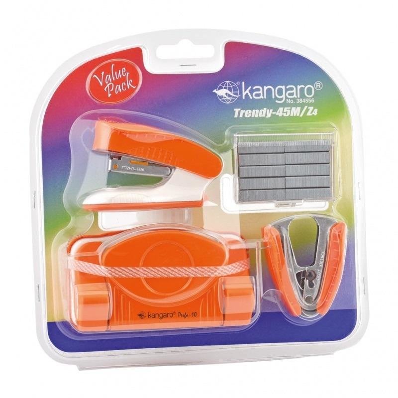 ergonomiczny zestaw 4 produktów: - dziurkacz do papieru Perfo-10 do 10 kartek - zszywacz Trendy 45M do 15 kartek, - rozszywacz, - pudełeczko zszywek 24/6 atrakcyjne opakowanie typu blister do użytku w biurze i w domu 10 lat gwarancji kolor pomarańczowy przeczytaj całość