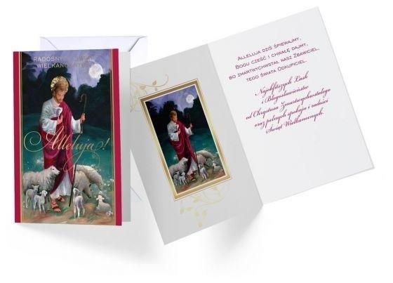 Karnet Wielkanoc Kartka wielkości B6. Karnet wielkanocny, posiada delikatne złote zdobienia. Kartka posiada tekst w środku, dołączona jest do niej koperta. przeczytaj całość