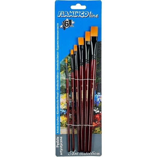 Zestaw pędzli artystycznych Art Collection płaskich 6szt.syntetyczne włosie, drewniane czerwone uchwytye uchwyty przeczytaj całość
