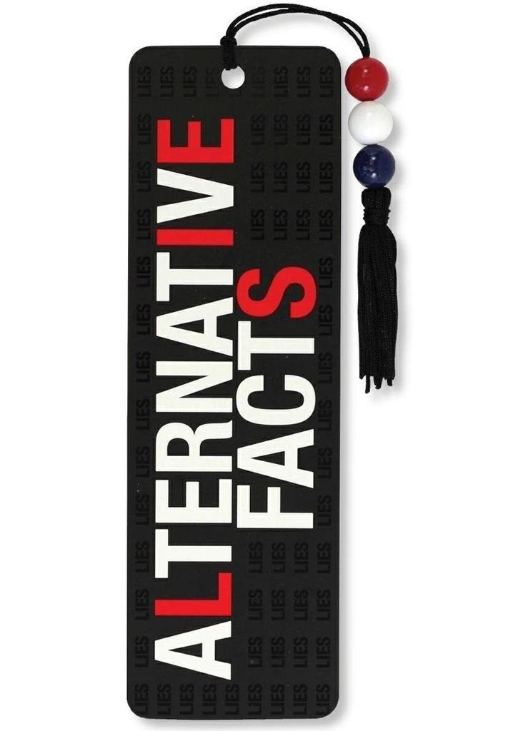 Zakładka do książki firmy Peter Pauper Press - Alternatywne fakty (Alternative Facts). Zakładka ma dopasowaną kolorystycznie wstążkę z frędzlem oraz koralik. Barwne, trwałe, zabawne lub motywujące nadruki sprawią, że czytanie będzie jeszcze ciekawsze. Każda zakładka jest drukowana na trwałym, powlekanym kartonie i pakowana w przezroczystą osłonkę. Uniwersalny wymiar 6,4 x 18,1 cm.