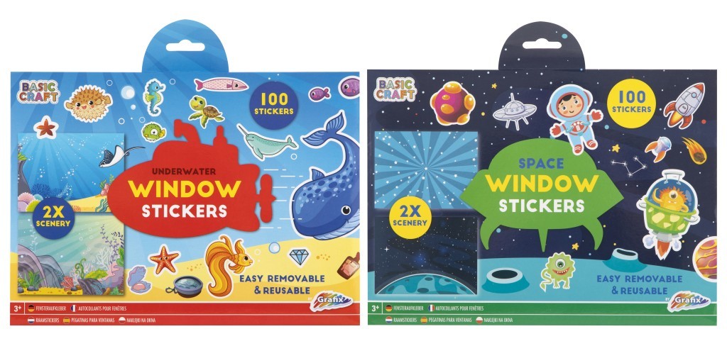 Naklejki na okna 100 szt. - opakowanie zawiera ponad 100 szt. naklejek na okna. Łatwe do usunięcia, nie pozostawiają kleju. Dwa rodzaje: kosmos i świat podwodny. przeczytaj całość