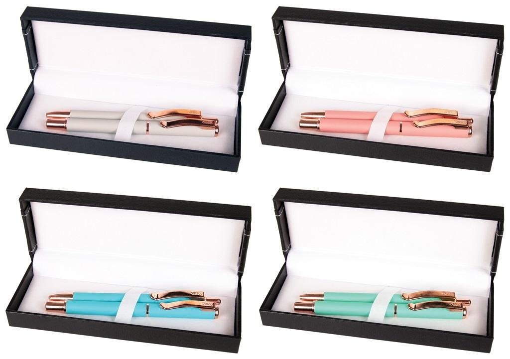Miks wzorów, towar wysyłany losowo. Cena za sztukę.Model zestawu piśmiennego MASTER w atrakcyjnej kolorystyce ze złotymi wykończeniami. Kolekcja obejmuje pióro wieczne ze stalówką irydową oraz długopis. Pióro wieczne ze stalówką irydową zasilane standardowymi nabojami atramentowymi. Długopis...